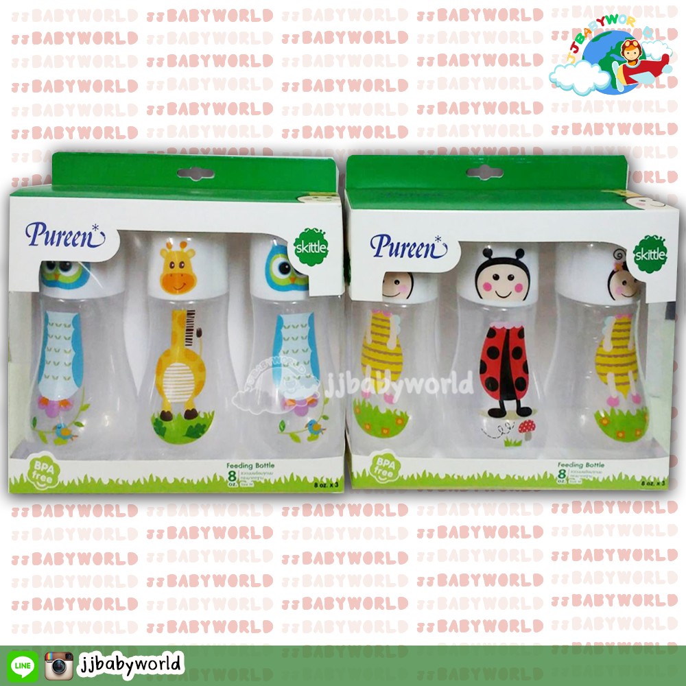 - ชื่อสินค้า ขวดนม Pureen เพียวรีน SKITTLE 8 ออนซ์ (แพค 3 ขวด)